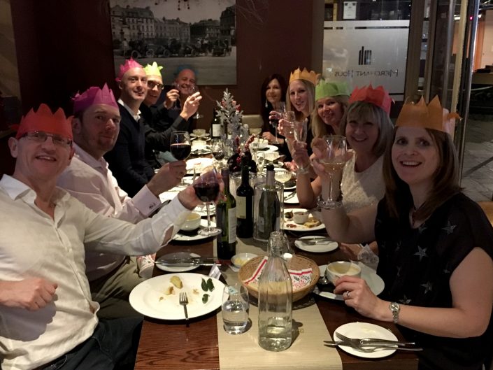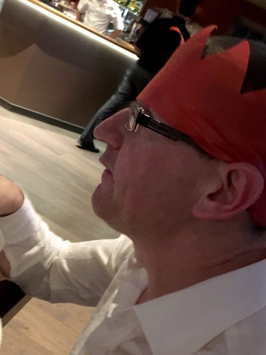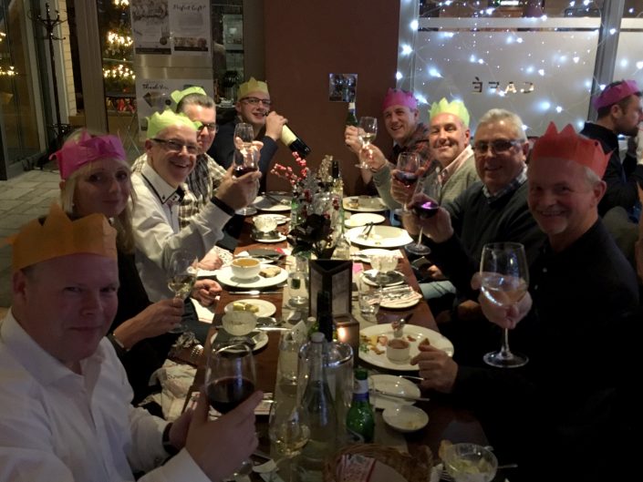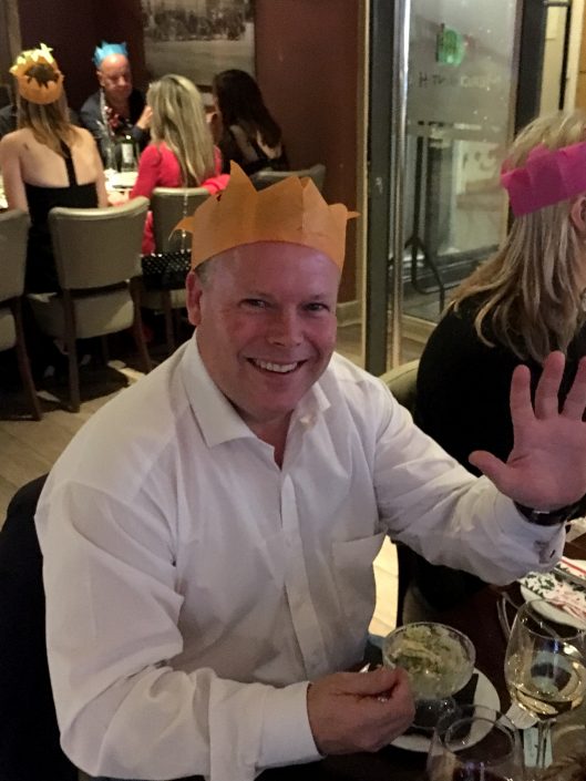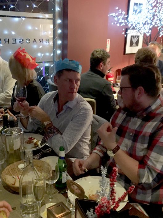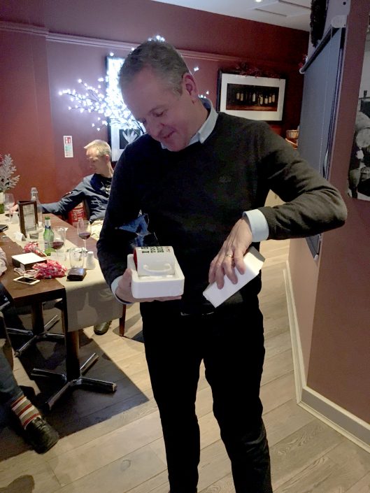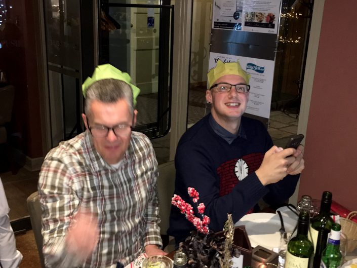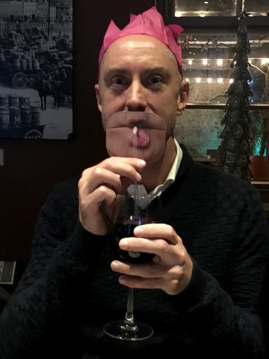 Jon & Andy looking worried – Tracy has the wine bottle again?