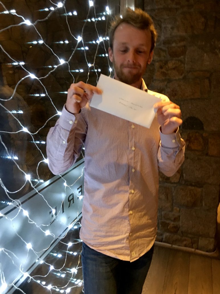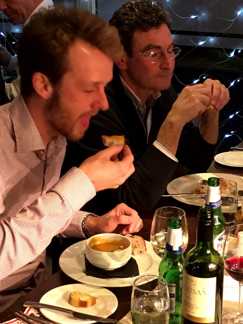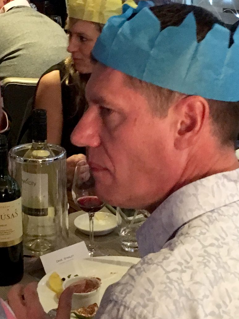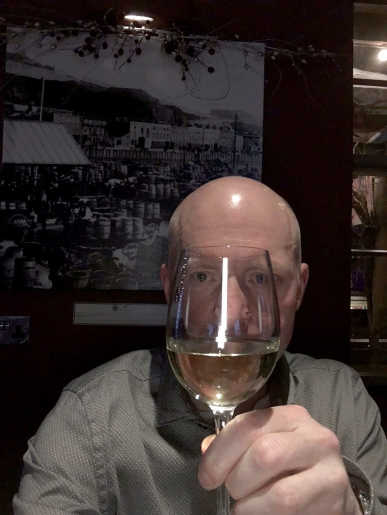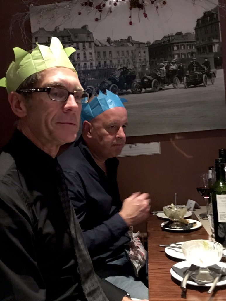 Jon & Andy looking worried – Tracy has the wine bottle again?