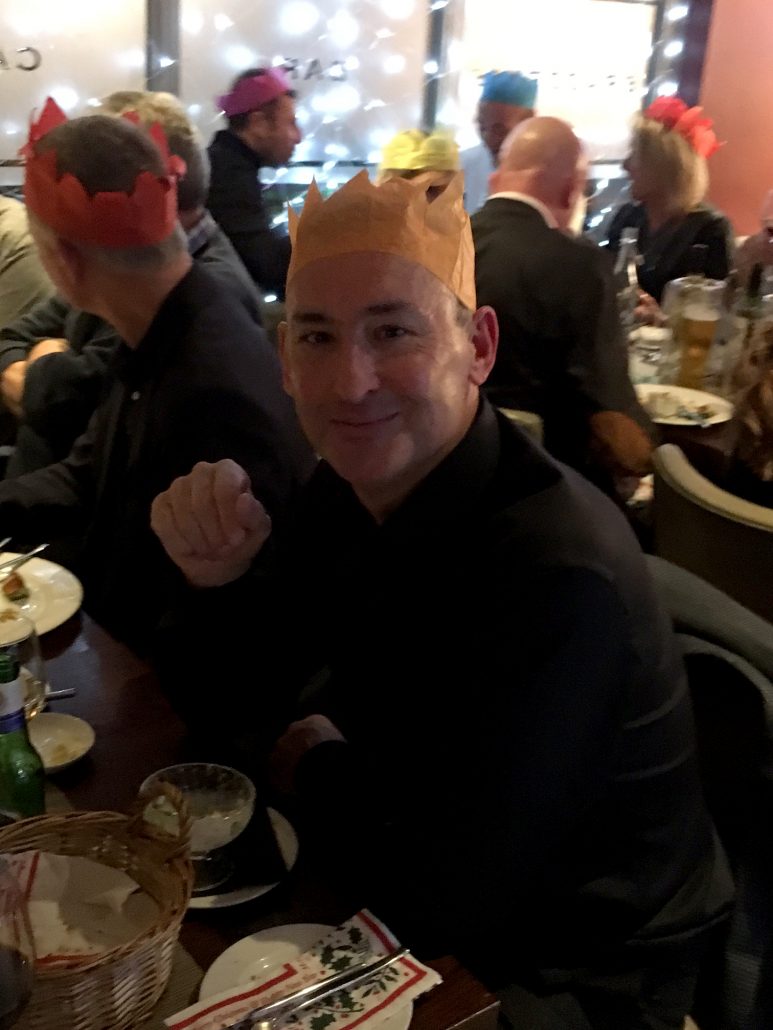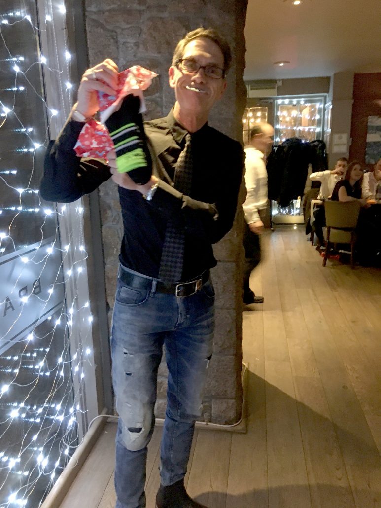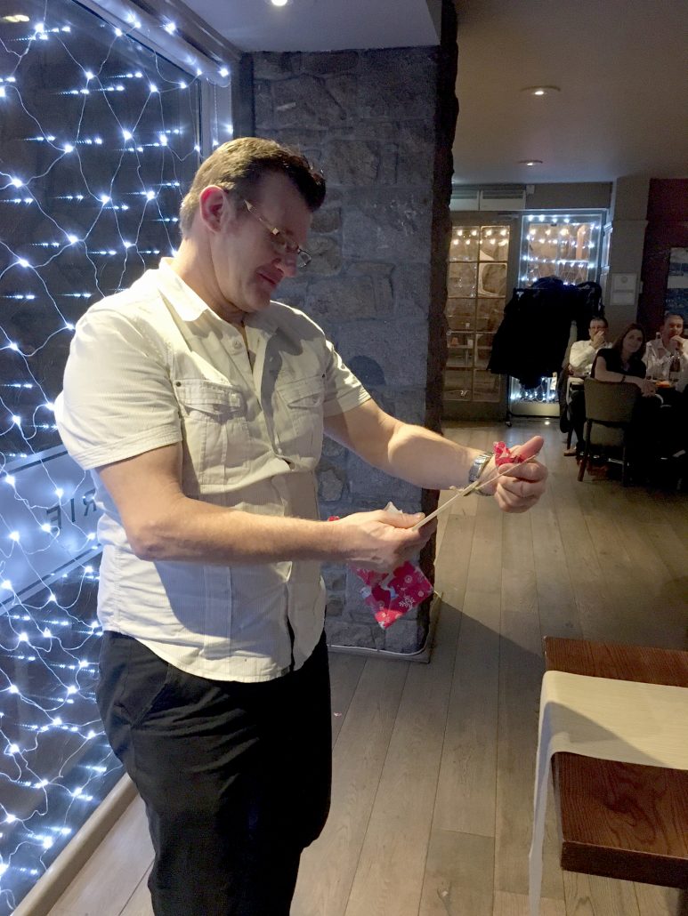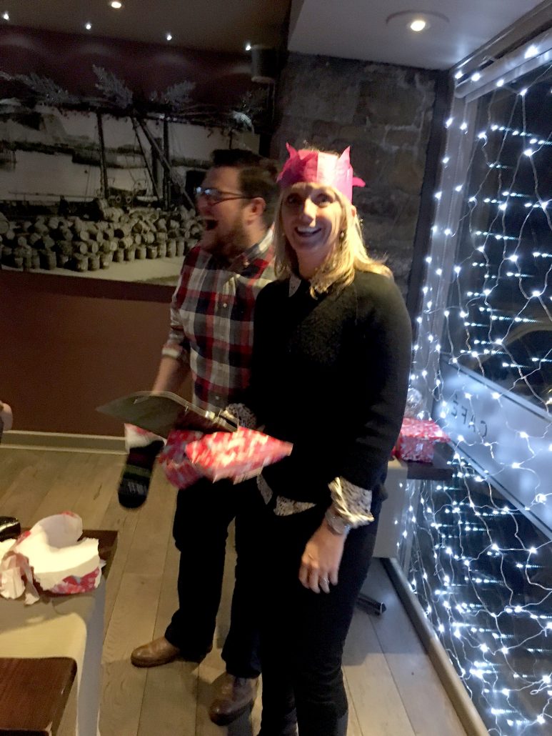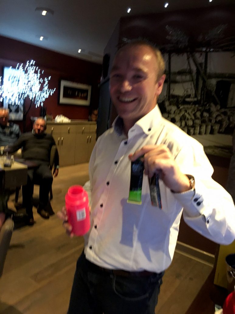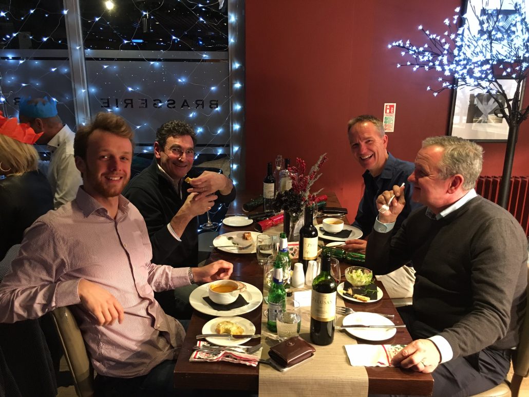 Jon & Andy looking worried – Tracy has the wine bottle again?
